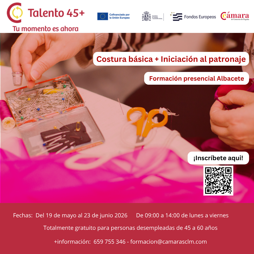 El programa Talento +45 de las Cámaras de Comercio consiste en un itinerario formativo a tu medida. Su finalidad es mejorar las competencias digitales/profesionales, con el objetivo de favorecer tus posibilidades de inserción laboral.