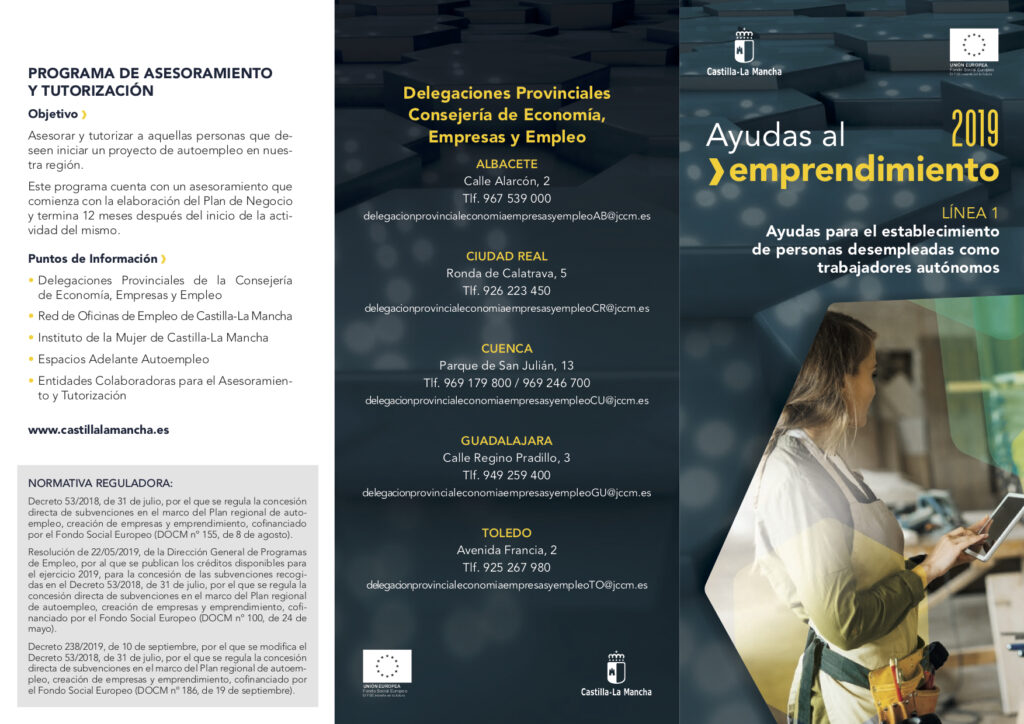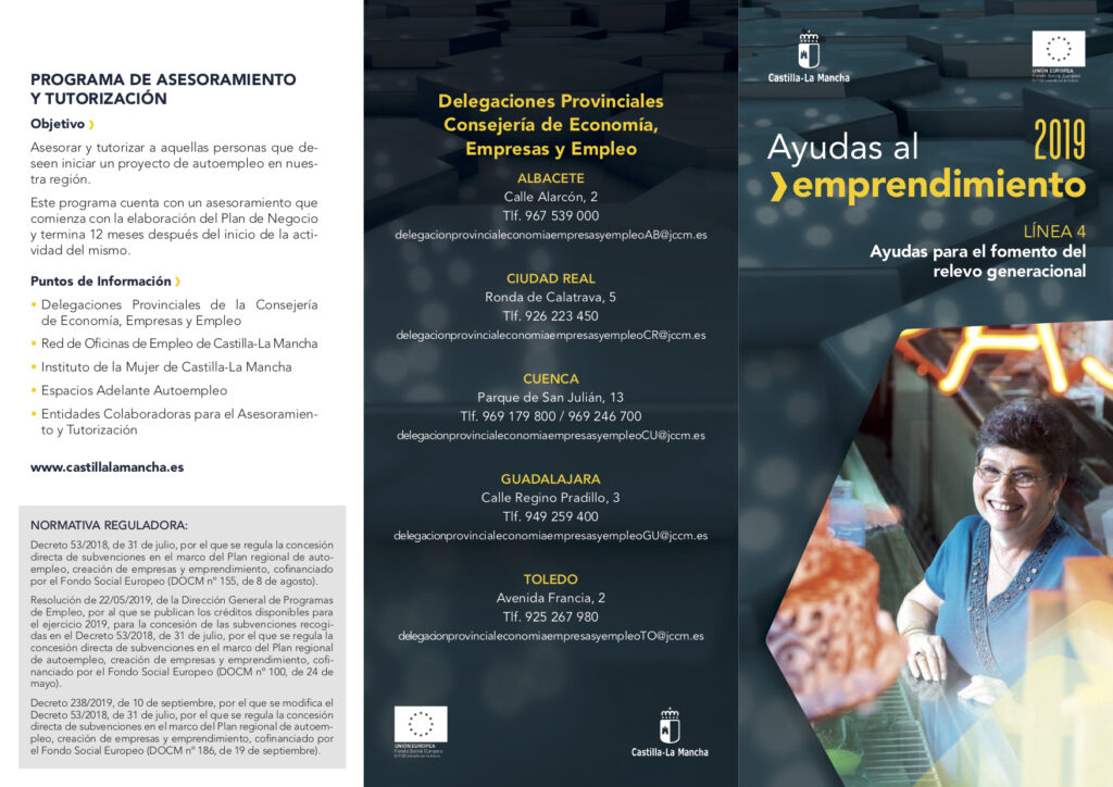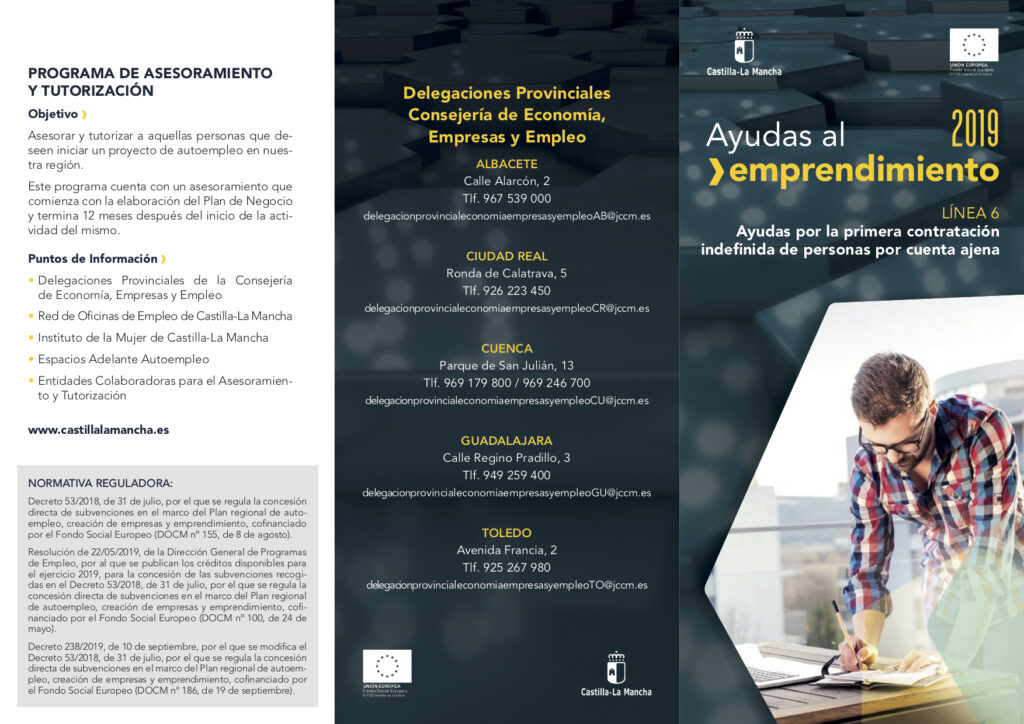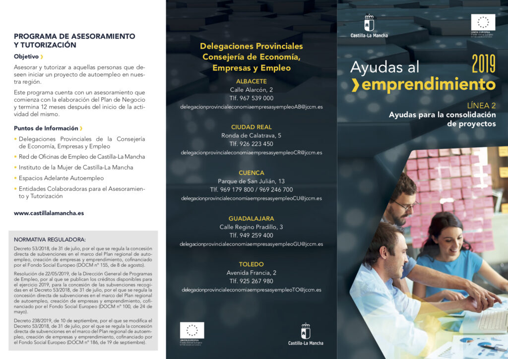 El día 19 de septiembre, el DOCM publicó el Decreto 238/2019, de 10 de septiembre, que viene a modificar el Decreto regulador de la concesión directa de subvenciones en el marco del Plan regional de autoempleo, creación de empresas y emprendimiento, cofinanciado por el Fondo Social Europeo.